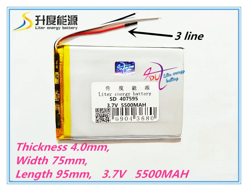 3 line 407595 полимерный литиевый аккумулятор 7,8, 9 дюймов планшетный ПК lithiumion 'с высоким качеством 407595 3,7 в 5500 мАч планшет батарея