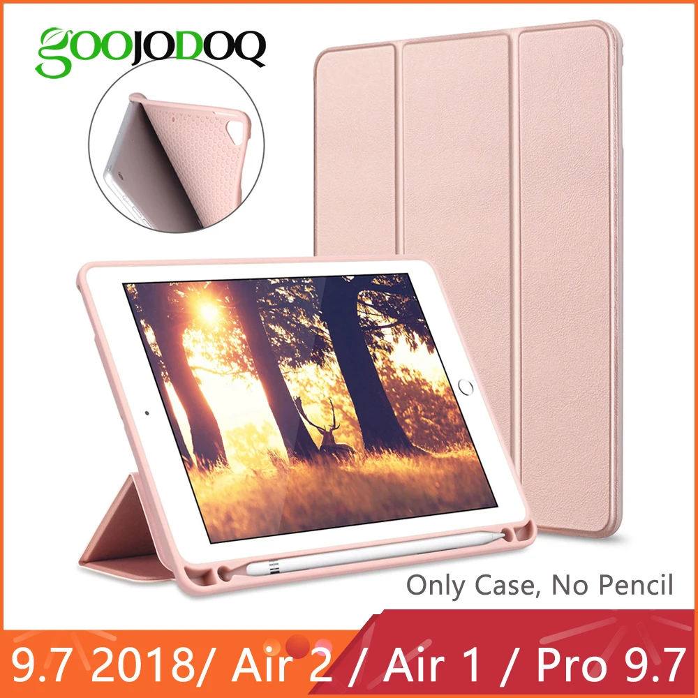 GOOJODOQ Smart Case для iPad 2018 9,7 Pro 9,7 с карандашом Держатель Силиконовый мягкий чехол для iPad Air 2/Air 1 принципиально 2017 9,7