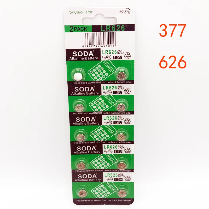 10 шт./лот 377 Батарея AG4 LR626 377A 1,5 V Щелочная Кнопка батарейки для часов 6,8 мм x 2,6 мм для часы с калькулятором часы