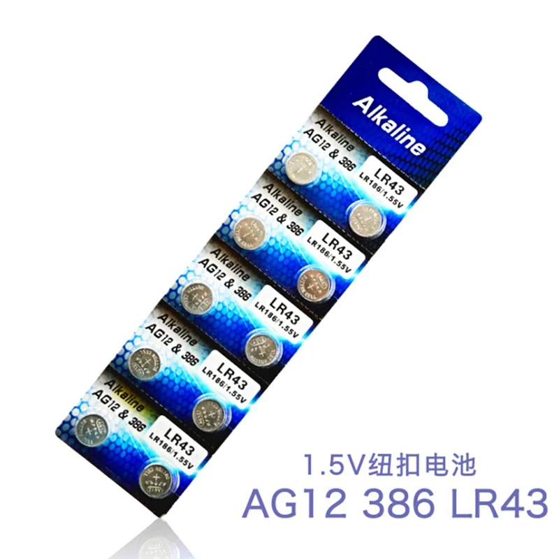 10 шт./лот LR43 AG12 батарея для монет 386A SR43 186 LR1142 1,55 в электронные Литиевые Батарейки для часов и игрушек