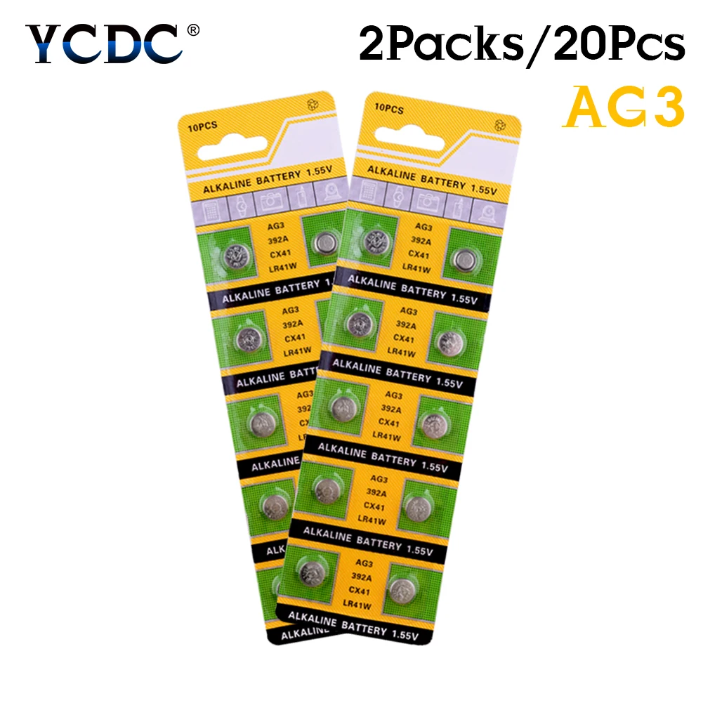 YCDC 20 шт./2 карты Ag3 батарея ограниченная 392 1,5 в 392A SR41SW LR41 192 SR41 щелочные батареи для монет Размер 7,9*3,6 мм