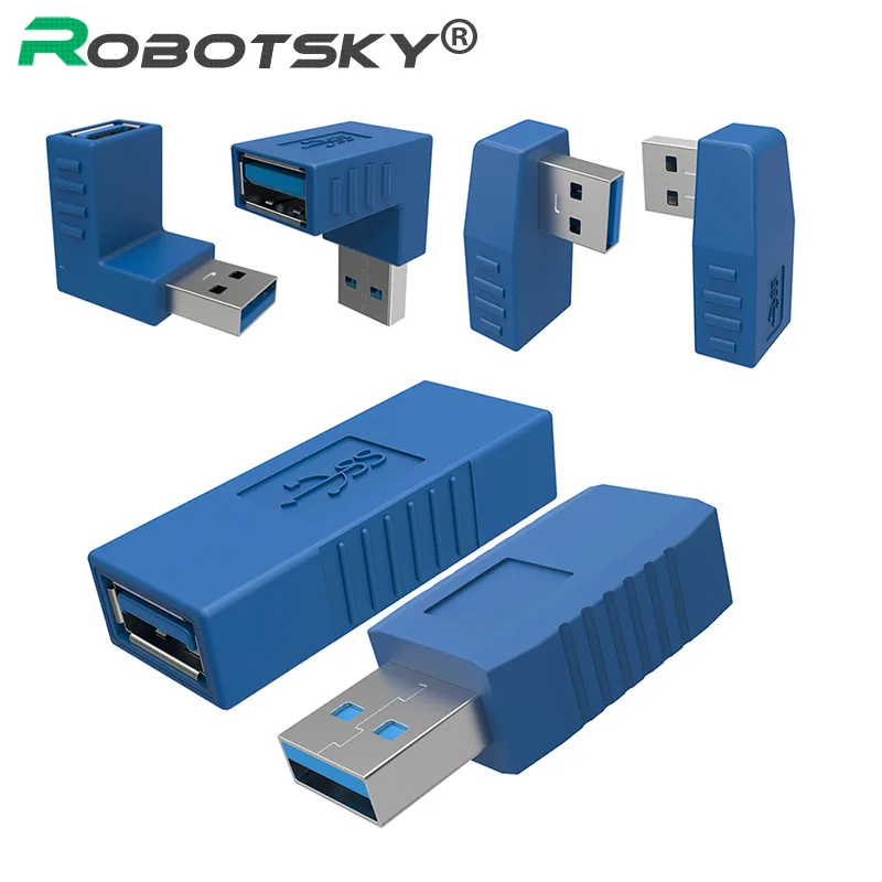 Синий 90 градусов по вертикали влево вправо вверх вниз Угловой USB 3,0 мужчин и женщин M/F адаптер соединитель конвертер