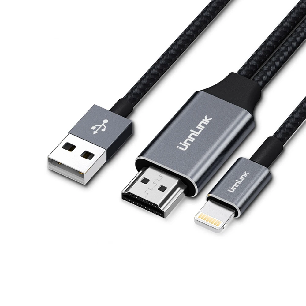 Unnlink USB к HDMI зеркальный литой кабель Auido + видео для iPhone iPad Lightning телефон к LED ТВ проектор