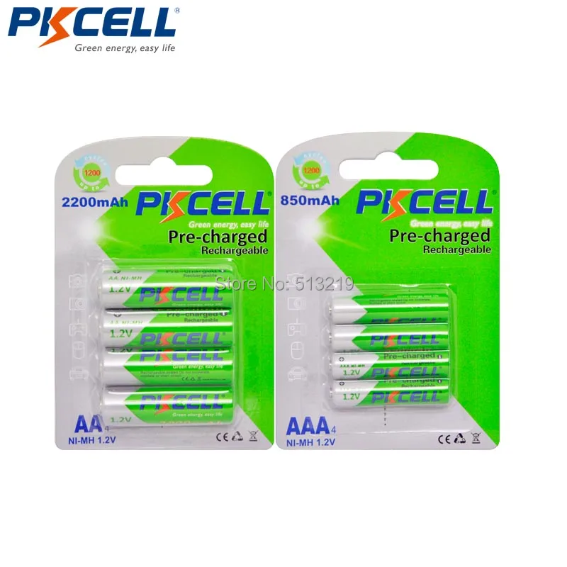 8 шт. PKCELL 4 AA 2200 мАч батарея и AAA 850 1,2 в NIMH аккумуляторная батарея аа/AAA с низким саморазрядом батареи