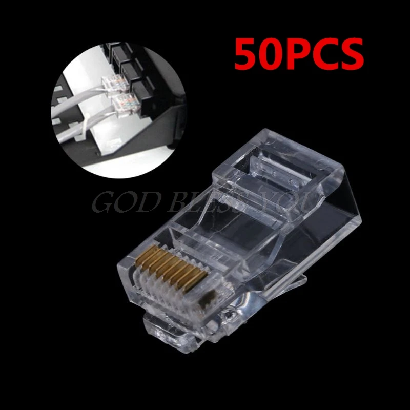 50 шт. Позолоченные RJ45 чистая сетевые кабели модульный разъем Cat5 CAT5e разъем 8P8C utp-неэкранированная модульная Rj45 клеммами