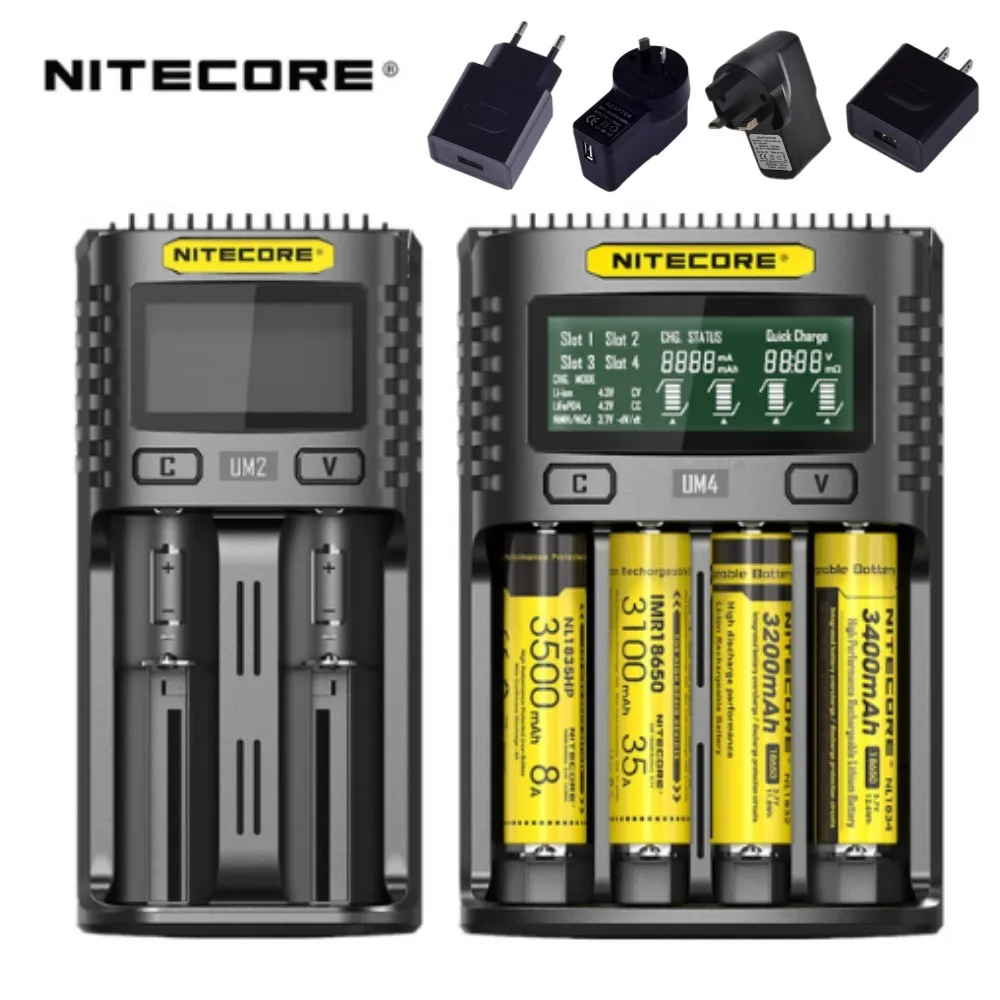 NITECOR UM4 UM2 C4 VC4 ЖК-дисплей Smart Батарея Зарядное устройство для Li-ion/IMR/INR/ICR/LiFePO4 18650 14500 26650 AA 3,7 1,2 V 1,5 V батареи D4