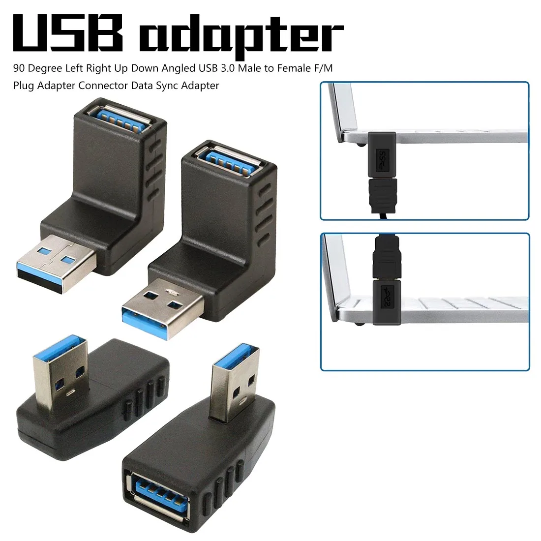 90 градусов влево вправо вверх вниз Угловой USB 3,0 мужчин и женщин F/M разъем адаптера синхронизации данных адаптер