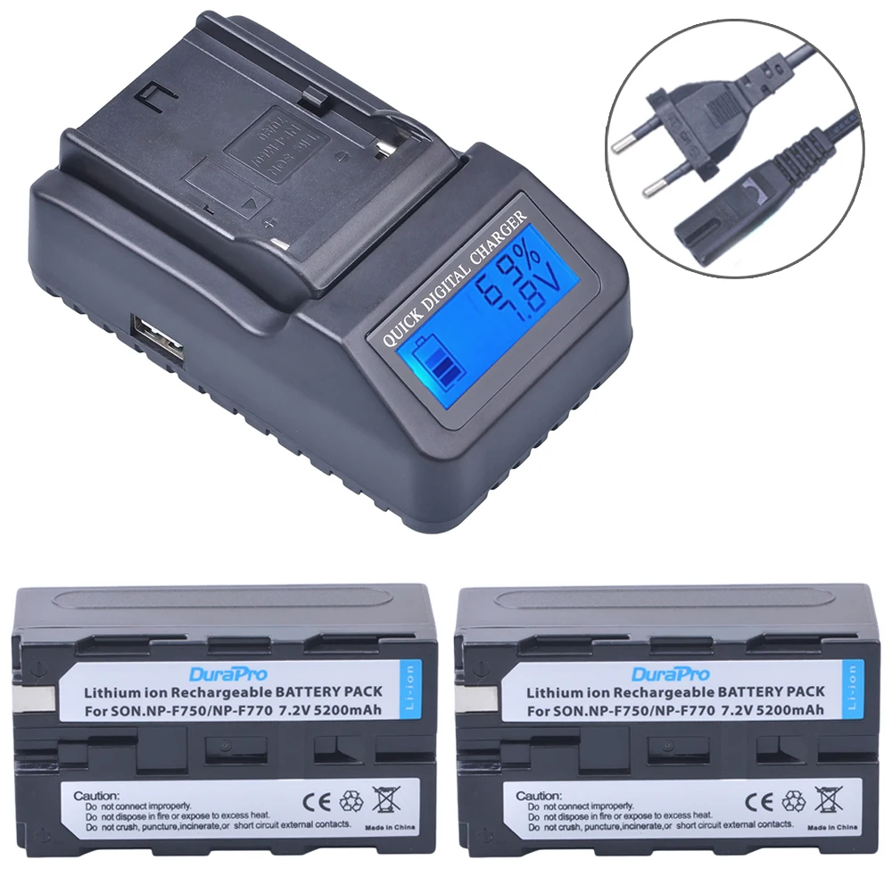 2 шт. 5200 мАч NP-F750 NP-F770 литий-ионный Батарея + ЖК-дисплей Быстрый Зарядное устройство для sony NP F970 F960 ccd-tr917 ccd-tr940 ccd-trv101 ccd-trv215