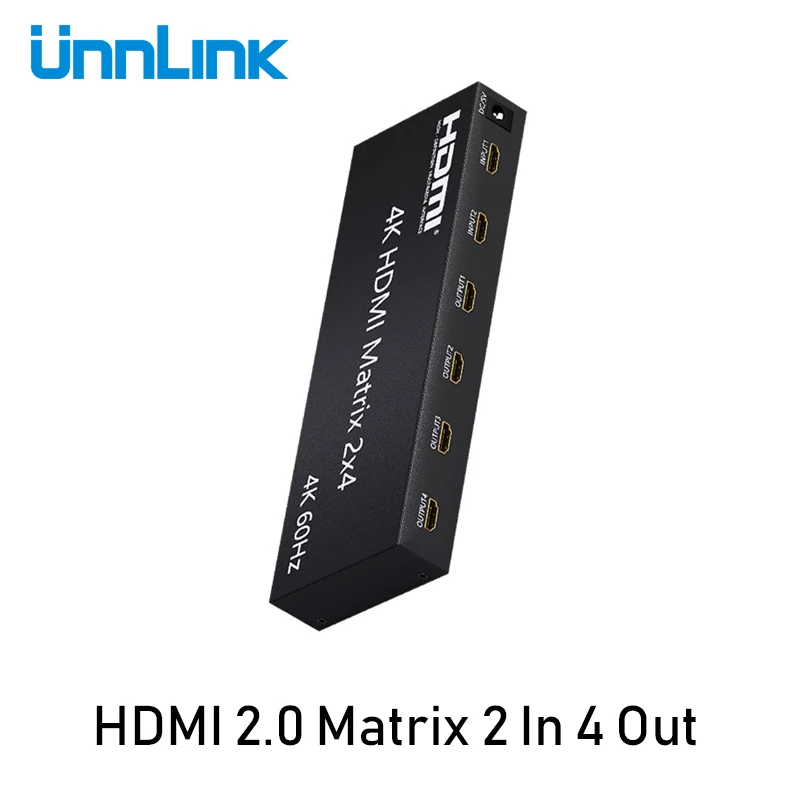 Unnlink HDMI матрица 2x4 HDMI2.0 переключатель сплиттер HDCP2.2 4K @ 60Hz HDR 2 в 4 Out аудио экстрактор Toslink 3,5 Jack для PS4 TV Box