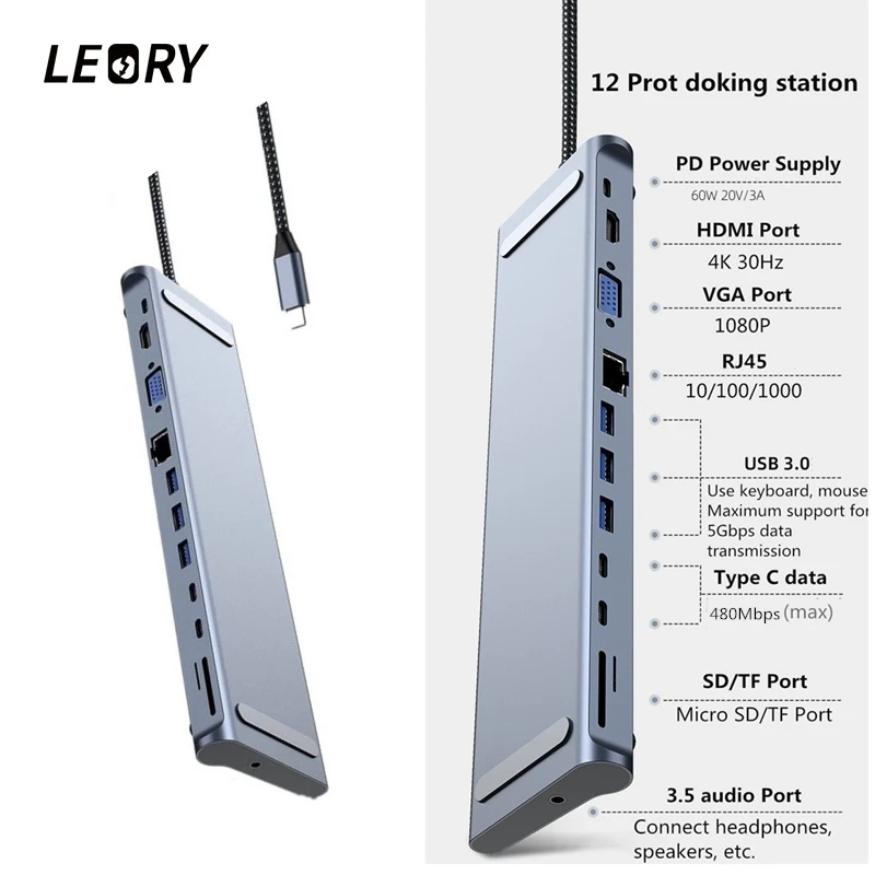 12 в 1 Тип usb-C USB Hub адаптер usb 3,0 Порты и разъёмы Тип-C PD 4K HDMI VGA RJ45 3,5 мм аудио Jack разъем для карт памяти для samsung huawei