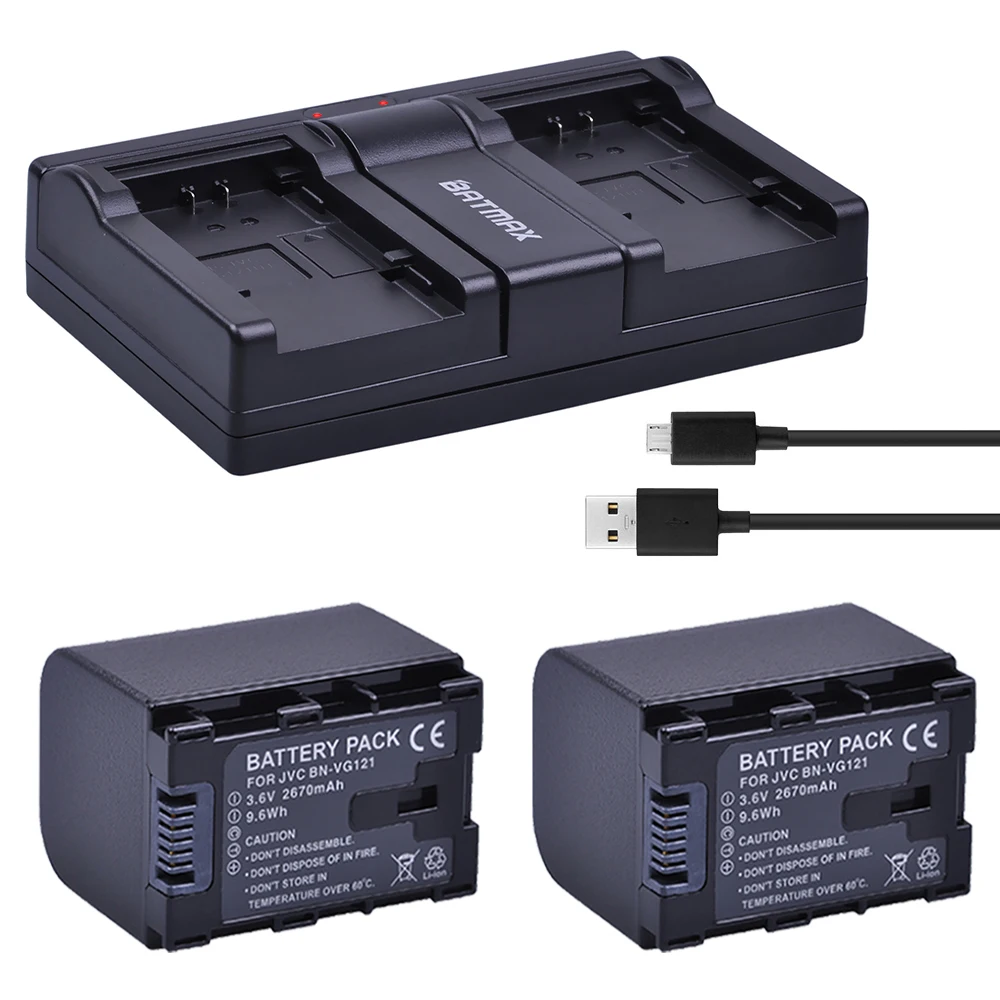 2 шт. 2670 мАч BN-VG121 VG121 BNVG121 Батарея + USB двойной Зарядное устройство для JVC GZ-HD620 GZ-HD500 GZ-HM320 GZ-HM550 GZ-HM860 GZ-HM960 GZ-HM9