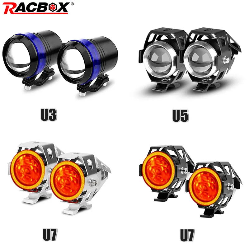2 шт., белые мотоциклетные фары, вспомогательная лампа U3 U5 U7, Светодиодный прожектор для мотоцикла, аксессуары, 12 В, мото DRL, точечные фары