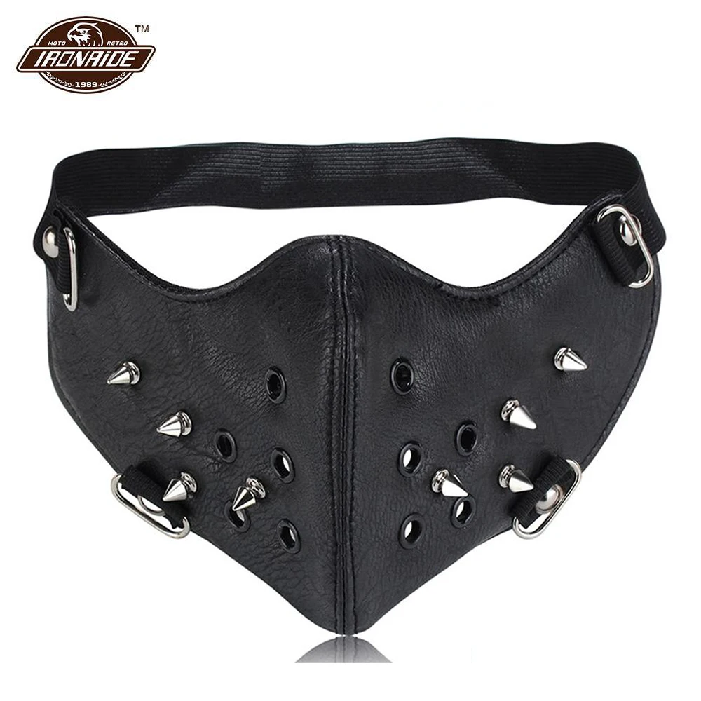 Балаклава мотоциклетная маска для лица из искусственной кожи Moto Face Shield Ретро Маска для лица Панк косплей локомотив заклепки маска для мужчи...