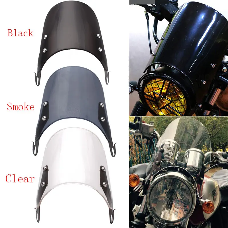 Черный/прозрачный мотоциклы на заказ компактный спортивный ветровой дефлектор Ретро лобовое стекло 4-7 ''налобный фонарь Универсальный подх...