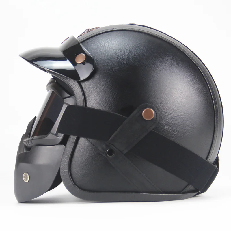 Бесплатная доставка из искусственной кожи для Harley шлемы 3/4 мотоцикл шлем для мотоцикла чоппера с открытым лицом Винтаж мотоциклетный шлем