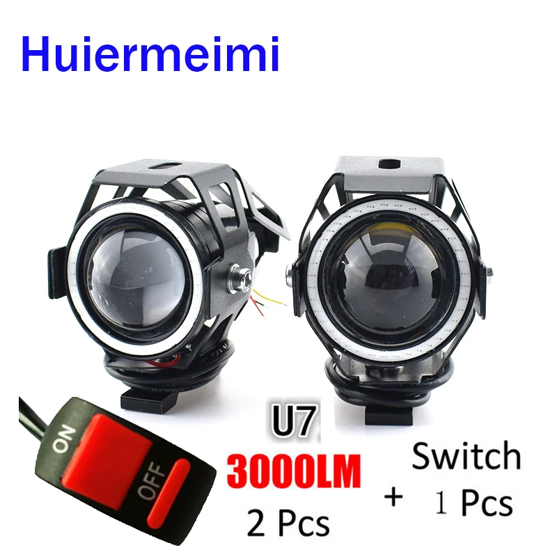 Huiermeimi 2 шт. мотоцикл фар 125 Вт 3000LMW мотоцикл spotlight 12 В 24 В U5 U7 светодио дный мото вождения месте головы свет фар