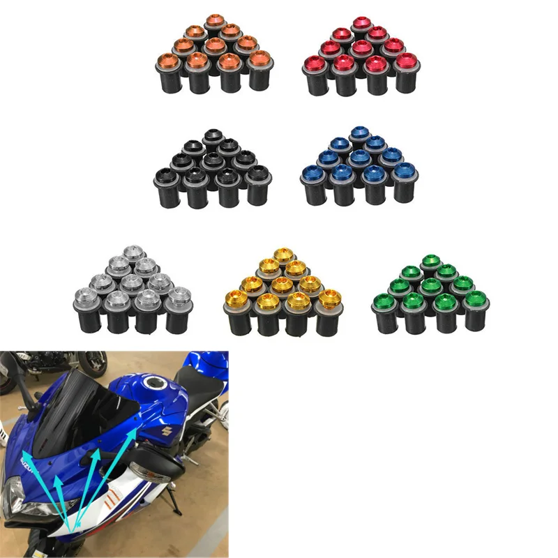 10 болтов для лобового стекла M5 5 мм крепежные винты для лобового стекла гайки шайбы для Yamaha YZF R1 R6 R7 600R 750R 1000R FZ1 FZ6 FZ6R FJR1300