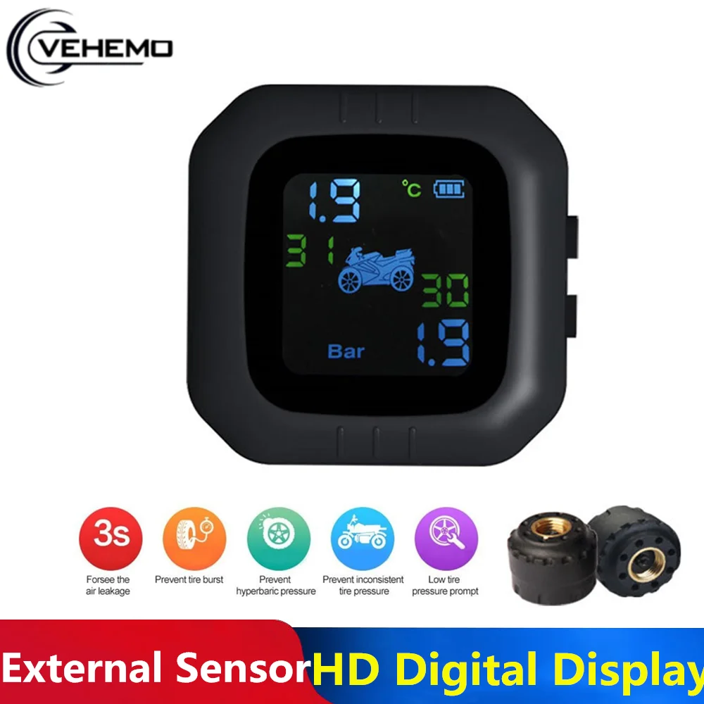 Водонепроницаемый Мотоцикл TPMS usb зарядка Температура шин система мониторинга давления в шинах ЖК-дисплей цветной экран 2 шт. внешний датчик
