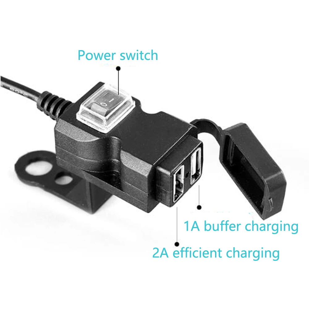 Двойной USB порт 12 в водонепроницаемый мотоцикл зарядное устройство на руль 5 в 1A/2.1A адаптер питания Разъем для мобильного телефона