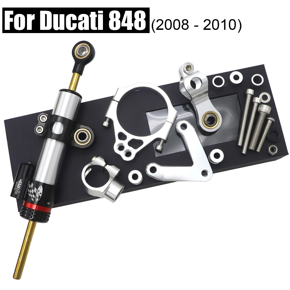 Для Ducati 848 ЧПУ рулевой демпфер Стабилизатор w/Кронштейн Набор безопасности комплект управления 2008-2010 анодированный Мотоцикл Запчасти Аксес...