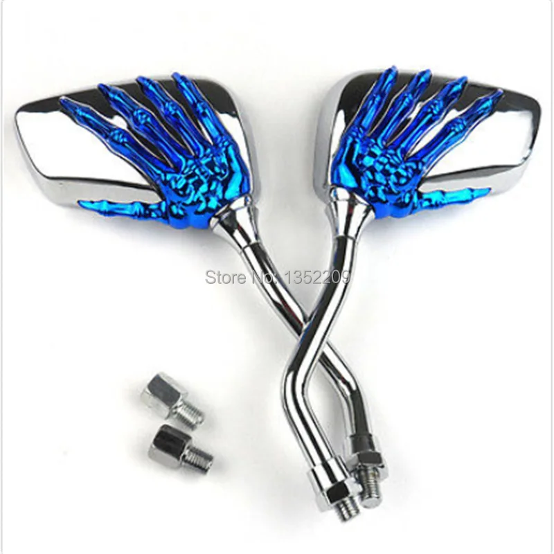 Синий мотоцикл Скелет Череп рук коготь тени заднего вида боковое зеркало 8 мм 10 мм подходит для Harley Honda Suzuki Kawasaki