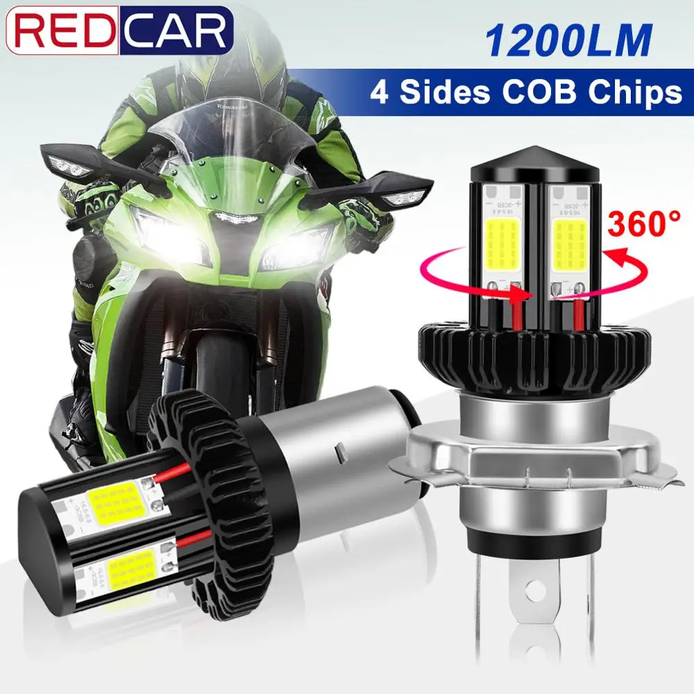 H4 BA20D моторный велосипед светодиодная лампа 4 стороны COB чипы 1200Lm Супер яркий 6000K 12W мотоцикл фары скутер аксессуары