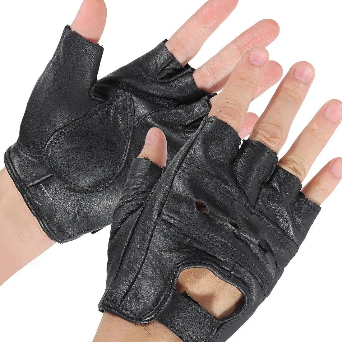 2 шт. M Черный Средний без пальцев кожаные мотоциклетные перчатки вентилируемые из воловьей кожи многократного использования половина паль...