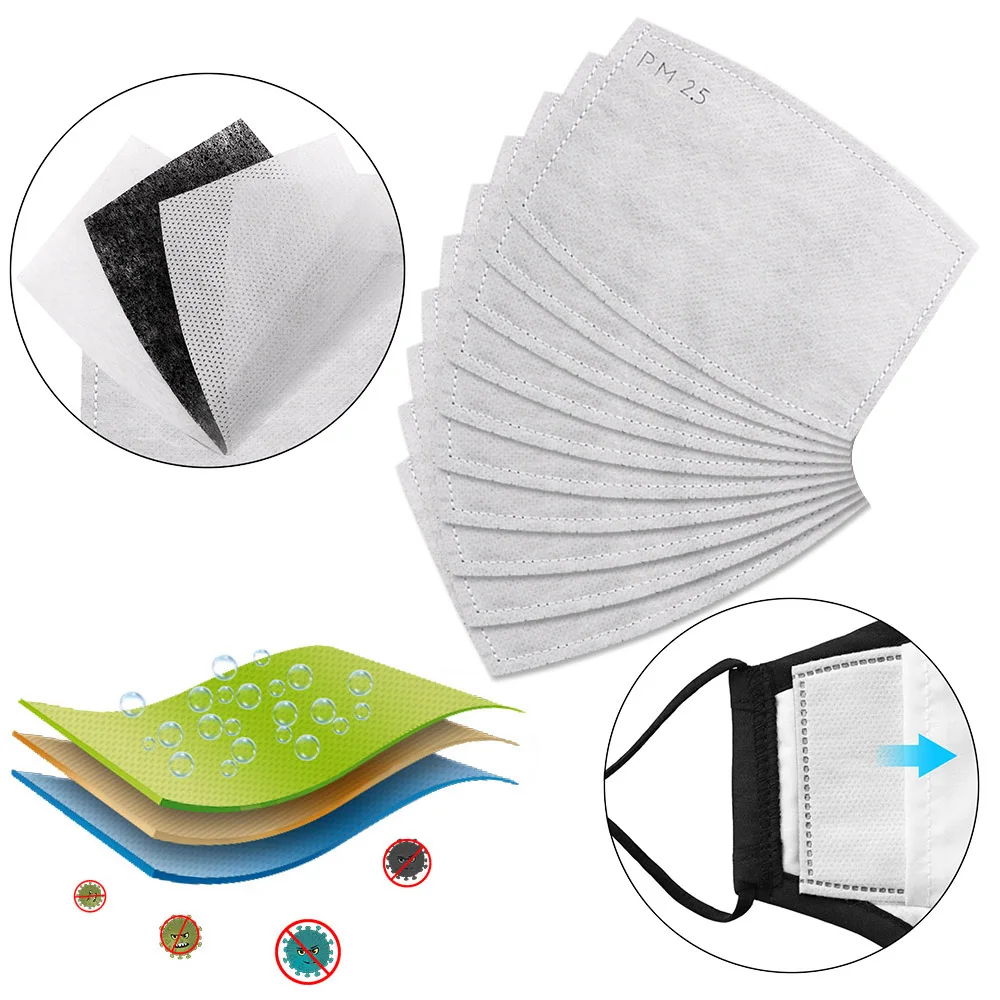 10/20/50 шт 5-слойный Нетканый фильтр с активированным углем (4,7*3 дюйма) Сменный фильтр-срез PM2.5 анти-Дымчатая маска для рта