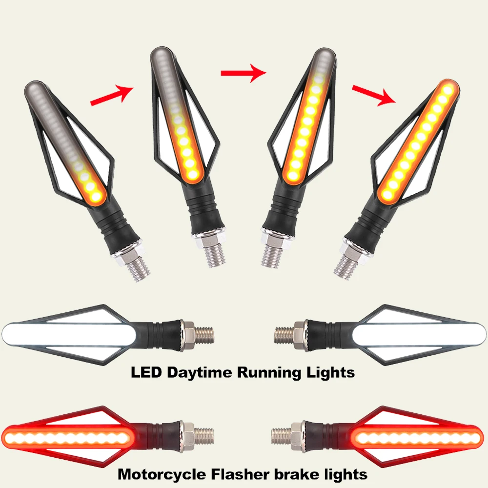 Универсальный мотоциклетный светодиодный светильник с поворотным сигналом, мигающий светильник с течением воды, хвостовый мигатель/ходовой мигатель DRL для Honda Kawasaki
