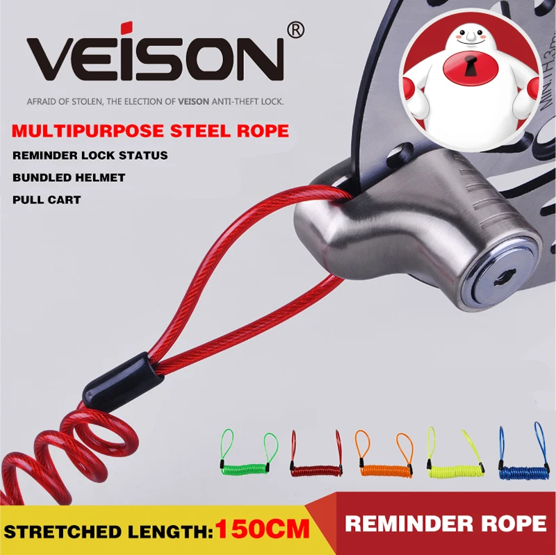 VEISON/Wishen 1,5 м длинный замок дискового тормоза предупреждающая веревка крепежный трос для шлема Противоугонная Веревка пружинная веревка