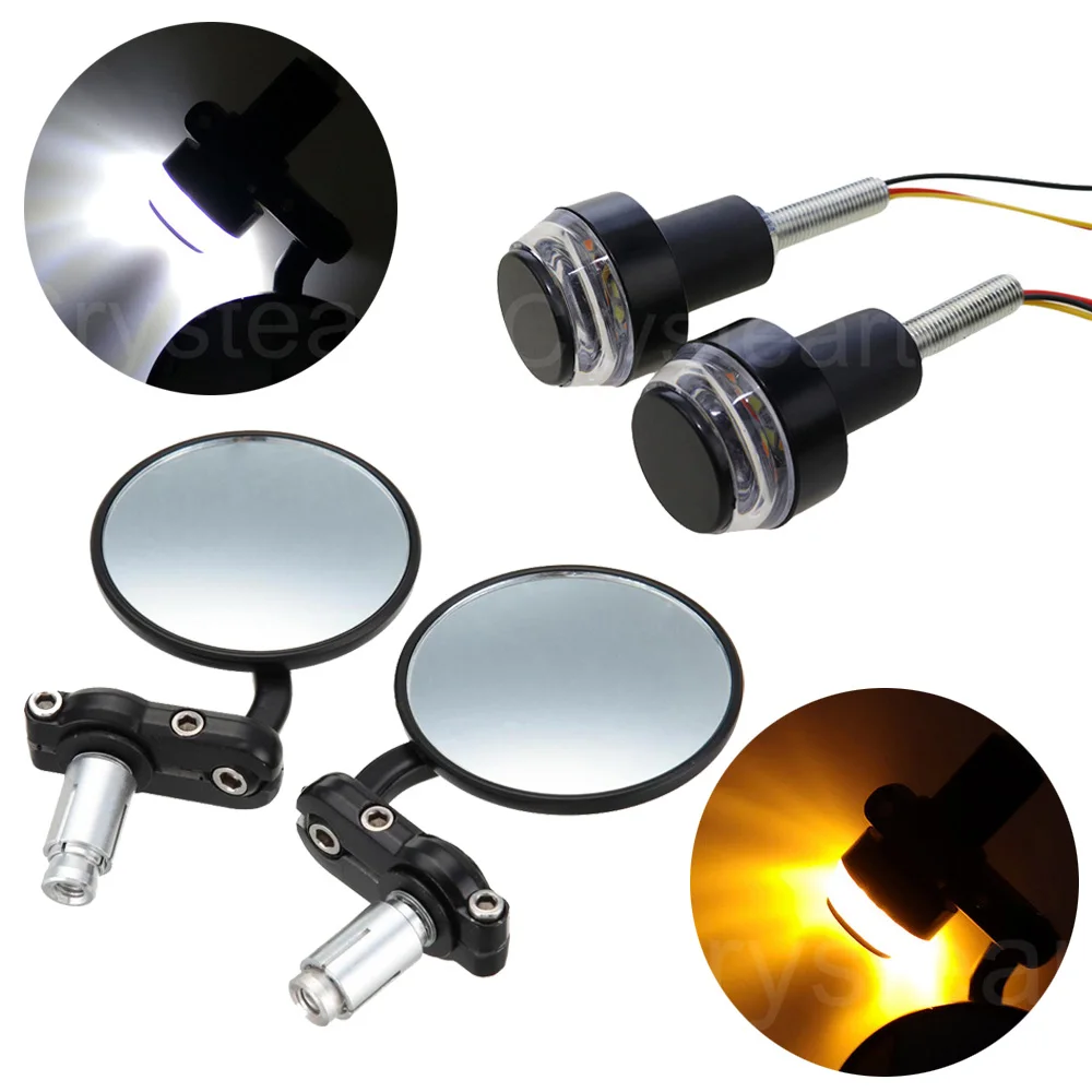 Мотоцикл 3 "Круглый 7/8" 22 мм руль торцевые зеркала заднего вида боковое зеркало поворотники для Honda Yamaha Suzuki Кафе Racer Bobber