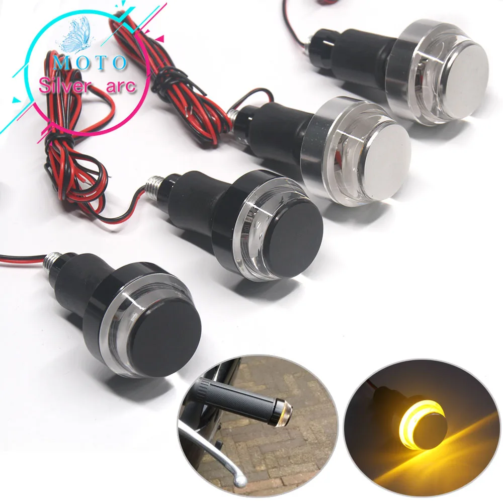 2 шт. 12 В Мотоцикл Руль конец светодио дный указатель поворота Amber цвет: желтый, белый Moto рукоятка заглушка для рукоятки боковые габаритные ла...
