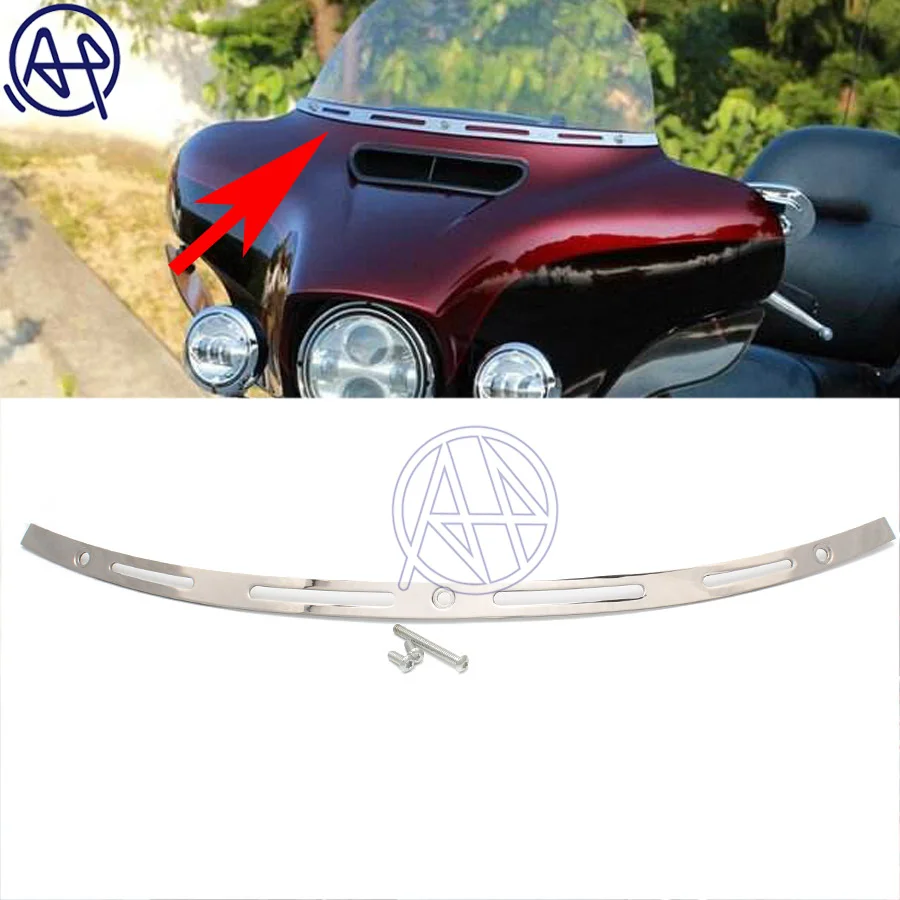 Для Harley Touring FLHT Electra Glide Street Glide CVO 2014-17 нержавеющая сталь мотоцикл щелевой летучая мышь лобовое стекло отделка хром