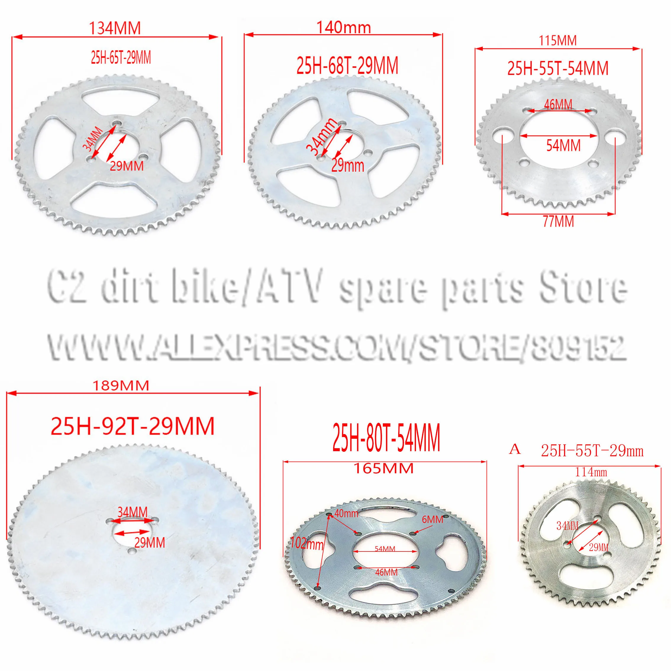 25 H 55 т 65 т 68 т 70 т 80 т 92 т зуб 29/54/55 мм Задняя звездочка для 47CC 49CC Мини Мото ATV Quad Грязь гарнитура Pit Pocket велосипед