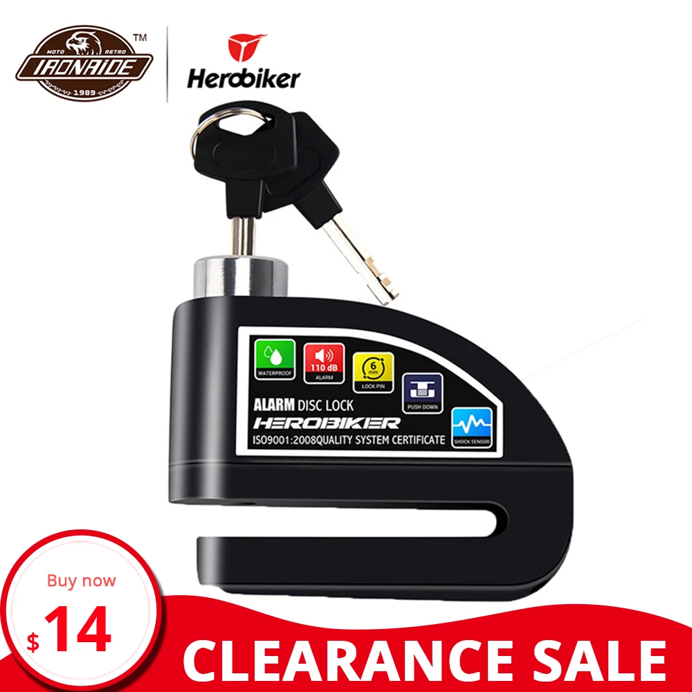 Зазор herobiker мотоцикл замок водонепроницаемый дисковый тормоз скутер Противоугонный велосипедный замок безопасности тревожный системный з...
