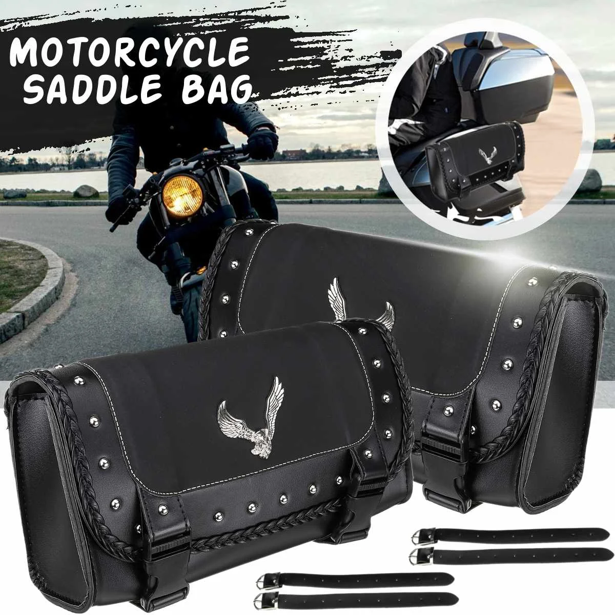 Черный водонепроницаемый PU кожаный мотоцикл сумки для инструментов хранения Чемодан седельный багажник с заклепками орел Для Softail Dyna Sportster
