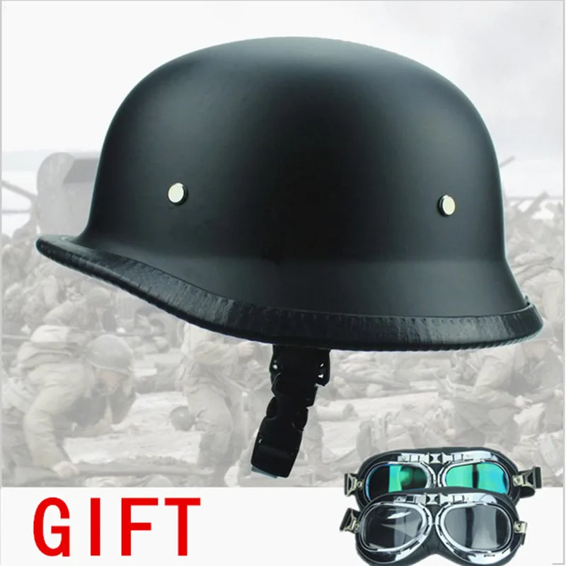 Бесплатная доставка Второй мировой войны Стиль черный Пособия по немецкому языку мотоцикл половина шлем Чоппер Байкер Пилот очки Новый