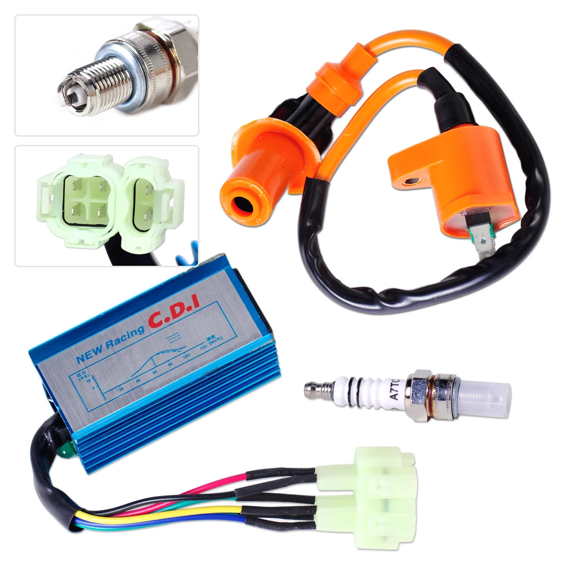DWCX производительность катушки зажигания + Свеча зажигания + + провод CDI Коробка для GY6 50cc-90cc 125cc 150cc Скутер ATV Go Kart мопед байк