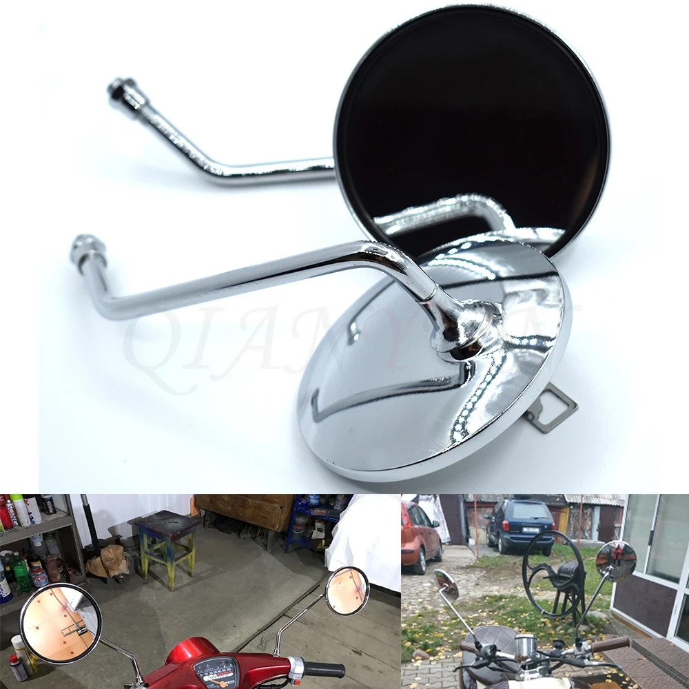 Универсальный 8 мм 10 мм мотоцикла хромированные зеркала круглое зеркало мотоцикл длинные стволовых для YAMAHA XJR400/1300 V-MAX1200 FZ-1N FZ-6N