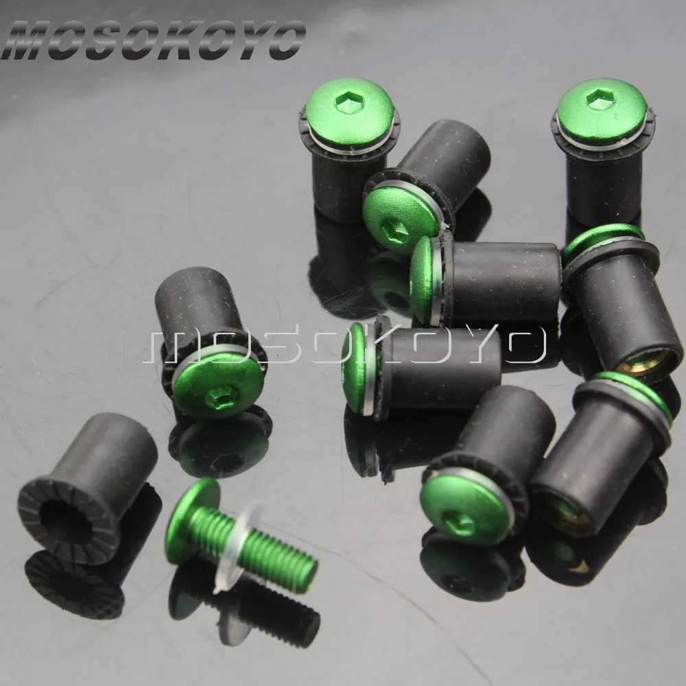 Зеленый мотоцикл лобовое стекло болты Wellnuts и шайбы 10 шт. M5 5 мм отражающая винты гайки крепеж для Kawasaki Спортбайк Racer