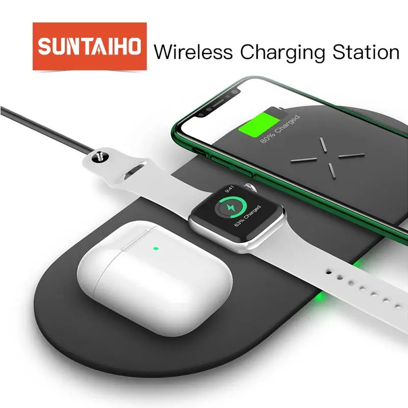 Suntaiho 3 в 1 Qi Беспроводное зарядное устройство для iPhone 11 Pro samsung S10 Plus 10 Вт Быстрое беспроводное зарядное устройство для Apple Watch 1 2 3 4 Airpods
