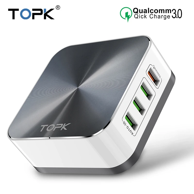 TOPK 8-Порты и разъёмы Quick Charge 3,0 USB Зарядное устройство ЕС США Великобритания AU Подключите Desktop Быстрый Телефон Зарядное устройство адаптер для iPhone samsung Xiaomi Huawe