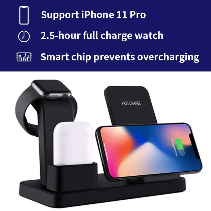 3 в 1 Быстрая Зарядка Qi Беспроводная зарядная станция совместим с Apple Watch & AirPods для IPhone 8 9 Xs Max для samsung S9/10 Note 9