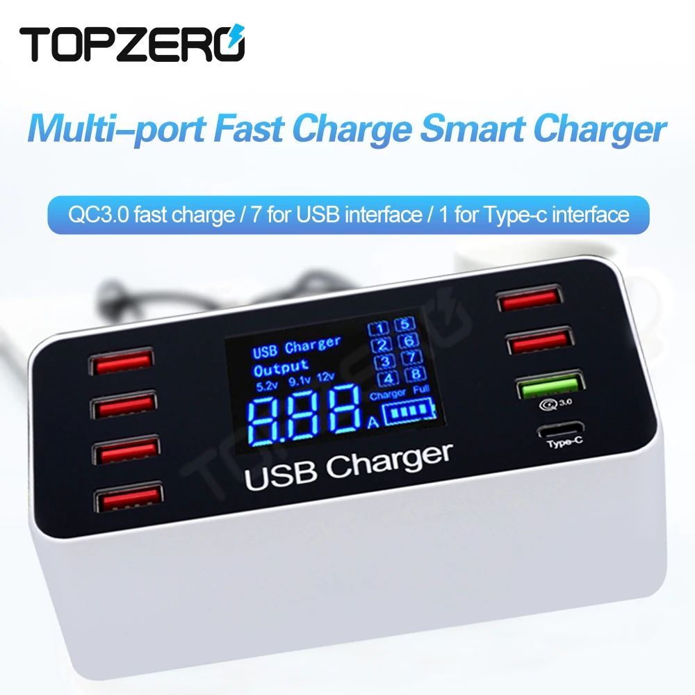 Быстрое зарядное устройство 3,0 USB зарядное устройство 40 Вт usb type C быстрая зарядная станция мобильный телефон 8 портов мульти Смарт зарядное устройство с светодиодный цифровой