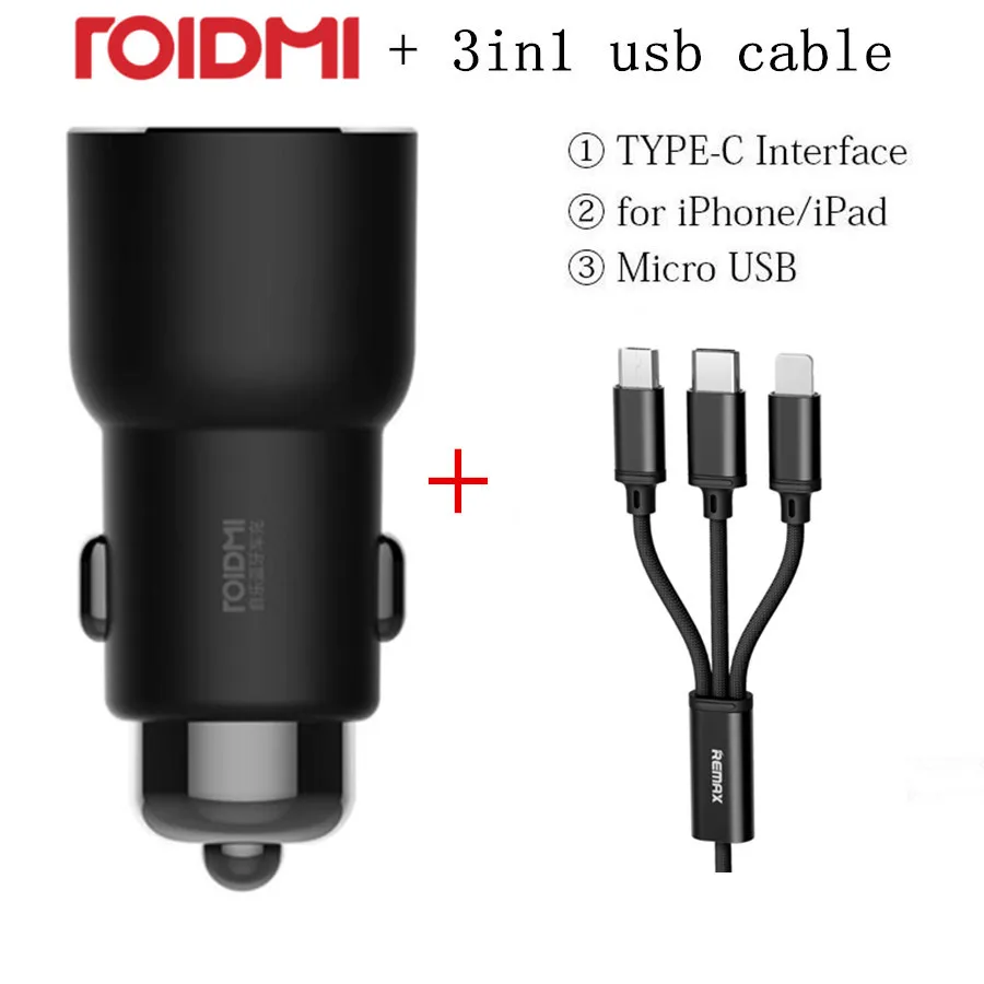 Оригинальное автомобильное зарядное устройство Xiaomi ROIDMI 3 S, Bluetooth, Handfree, 5 в 3,8 а, музыкальный плеер, fm-передатчики, приложение для iOS/Android
