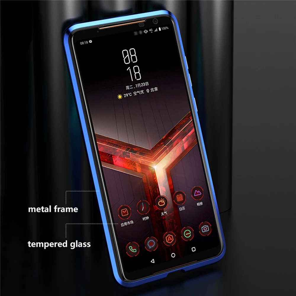Двусторонний чехол из закаленного стекла для телефона для ASUS ROG Phone II 2/ZS660KL Прозрачный чехол для телефона с магнитным покрытием передняя и за...