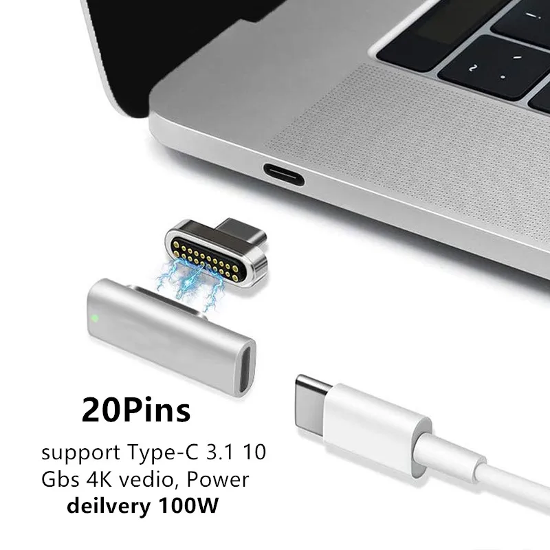 20 контактов магнитный usb type C адаптер USB 3,1 10 ГБ/сек. PD 100 Вт быстрый заряд Тип C разъем совместим с MacBook Pro/Pixelbook