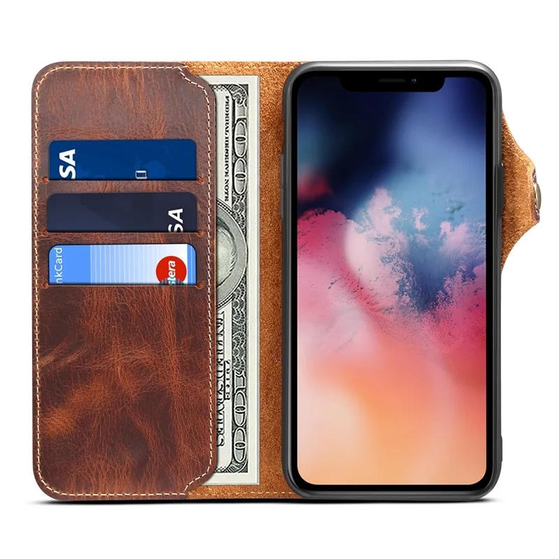 Чехол-бумажник из натуральной кожи для Apple iPhone 11 11 Pro Max X XS Max XR 7 8 6 6s 7 Plus 8 plus, задняя крышка с заклепками и отделением для карт