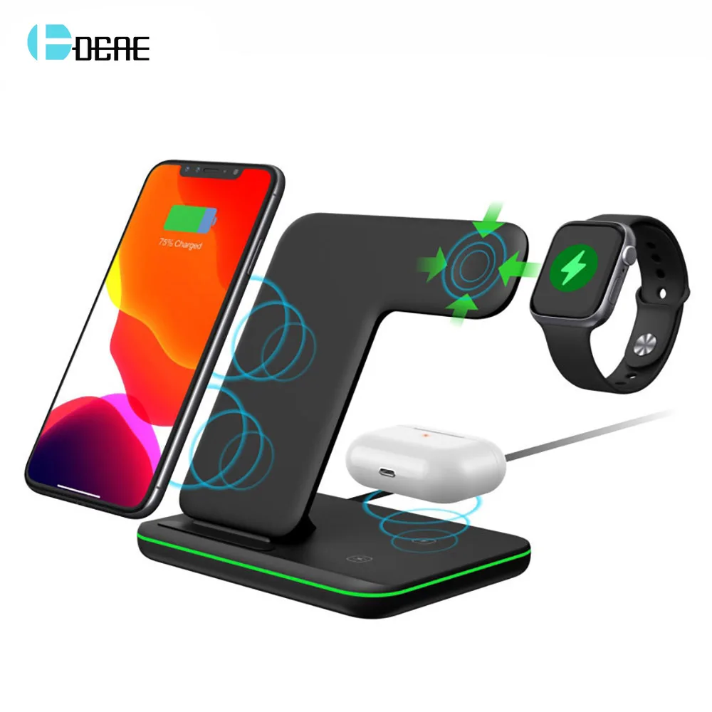 DCAE 15 Вт Qi Беспроводной Зарядное устройство подставка для iPhone 11 XS XR X 8 samsung S10 Быстрая зарядка док-станция для Apple Watch, версии 5 4 3 Airpods