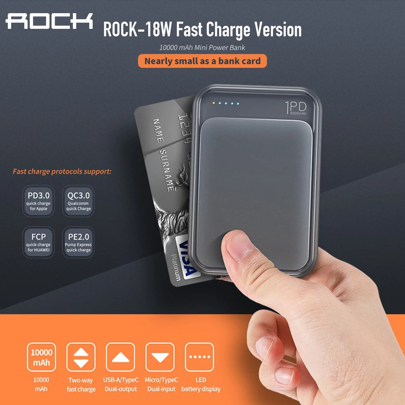 Рок мини PD 10000 мАч запасные аккумуляторы для телефонов Портативный внешний батарея USB PD3.0 QC3.0 FCP Быстрая зарядка запасные аккумуляторы для те...